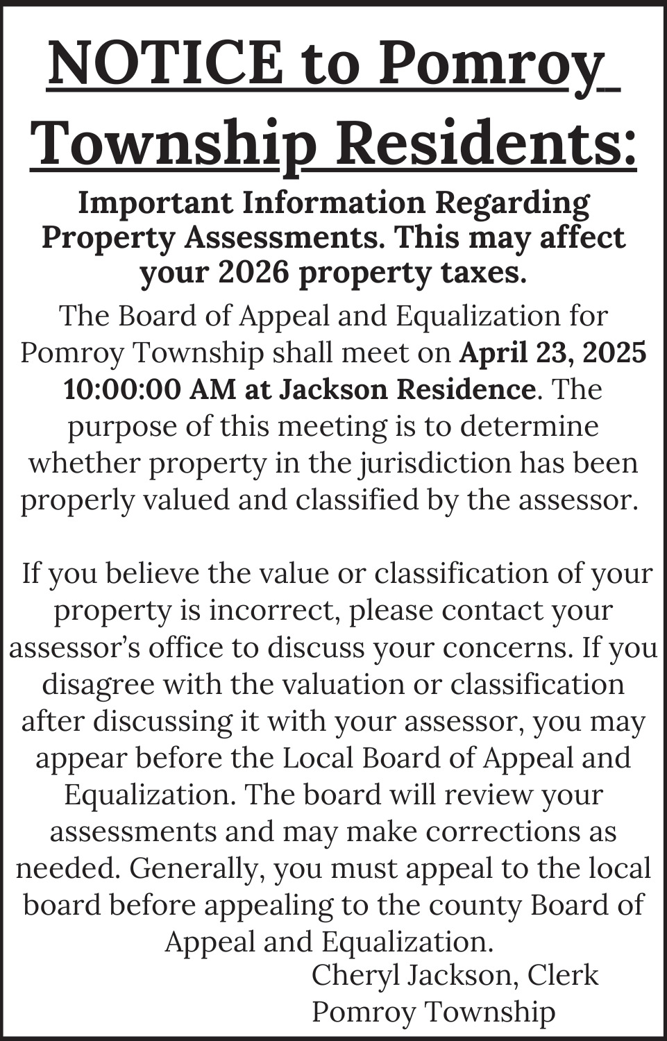 Apr 13, 2025. Pomroy Township Government Ads from Grand Rapids Herald-Review
