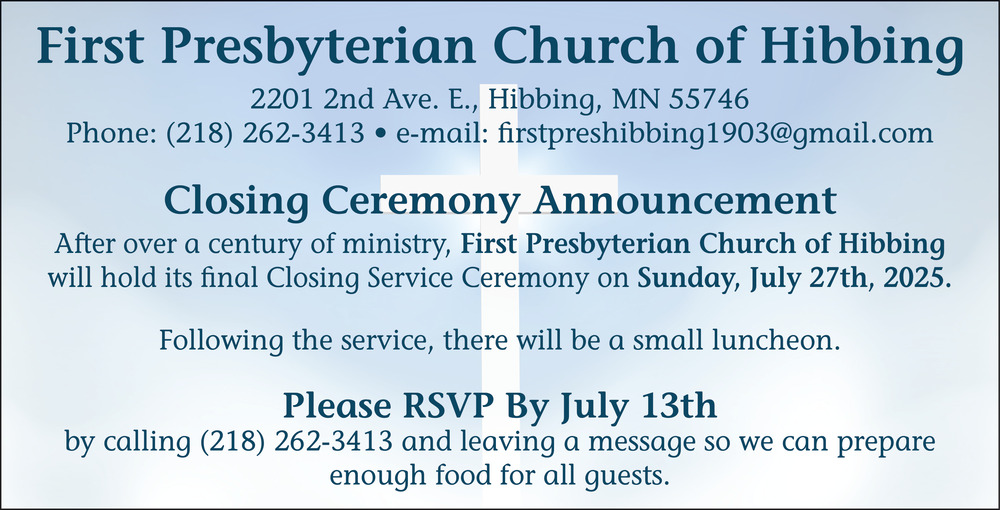 Jul 05, 2025. First Presbyterian Church Church Ads from Mesabi Daily News