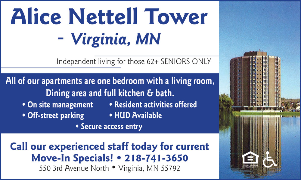 Ads for Alice Nettell Tower Apartments in Virginia, MN
