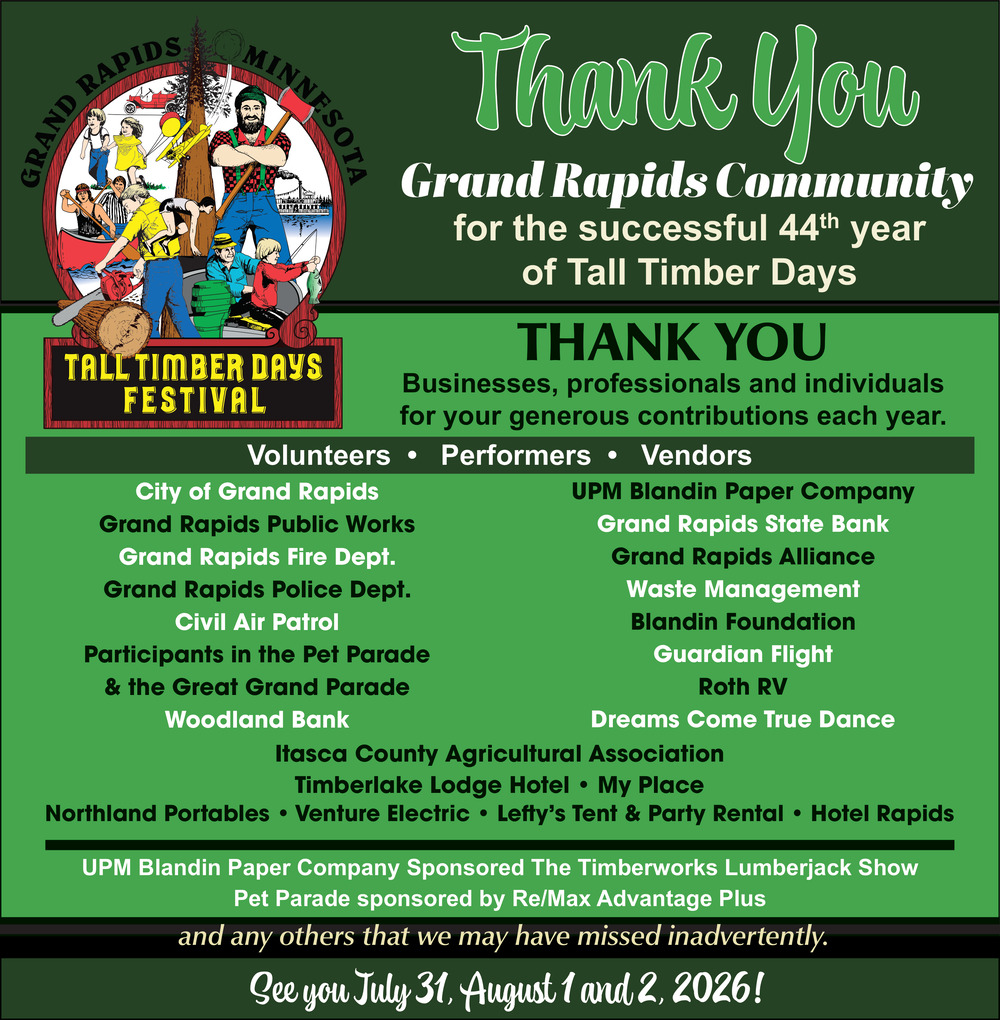 Aug 10, 2025. Tall Timber Days Events Ads from Grand Rapids Herald-Review