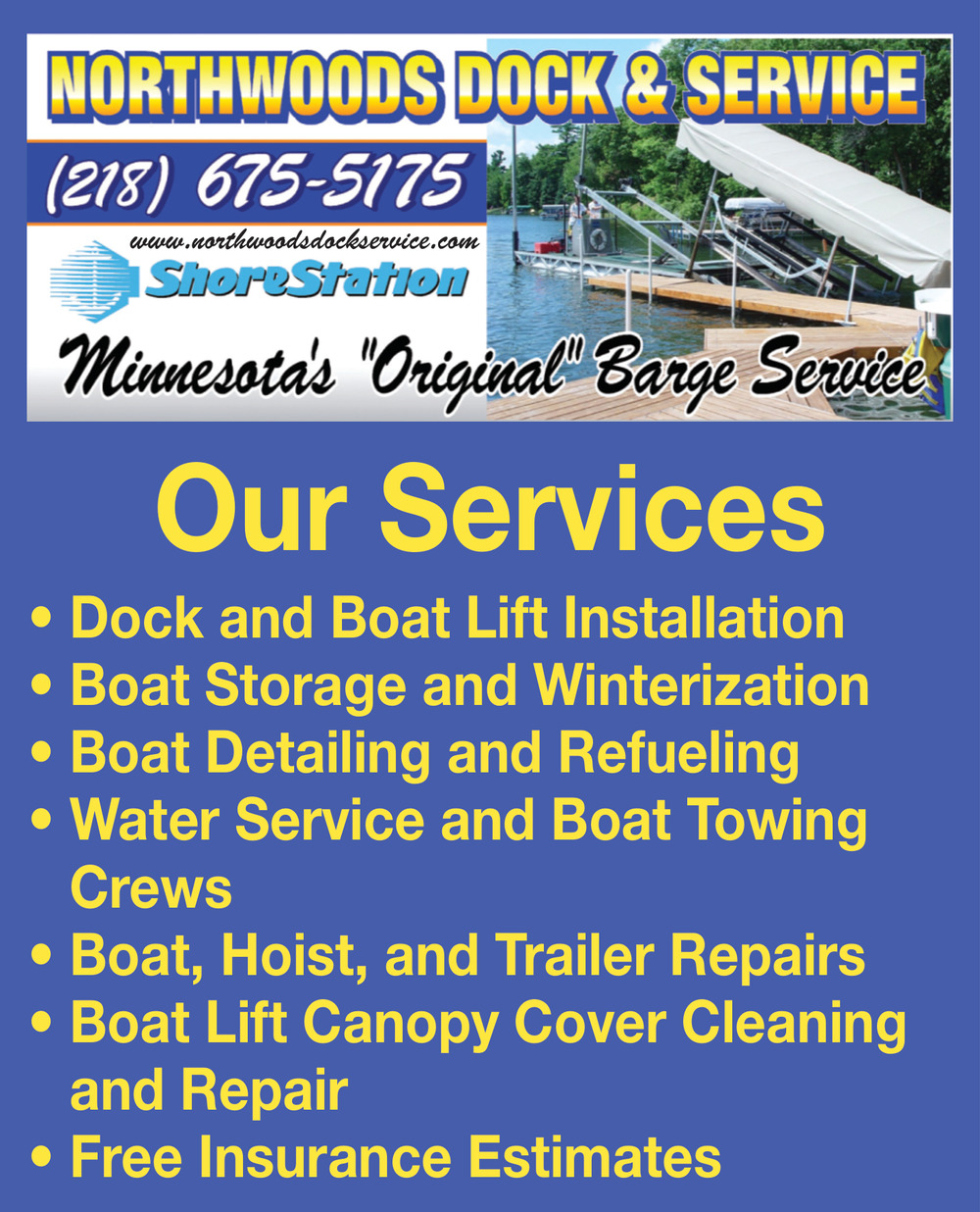 Ads for Northwoods Dock & Service in Hackensack, MN