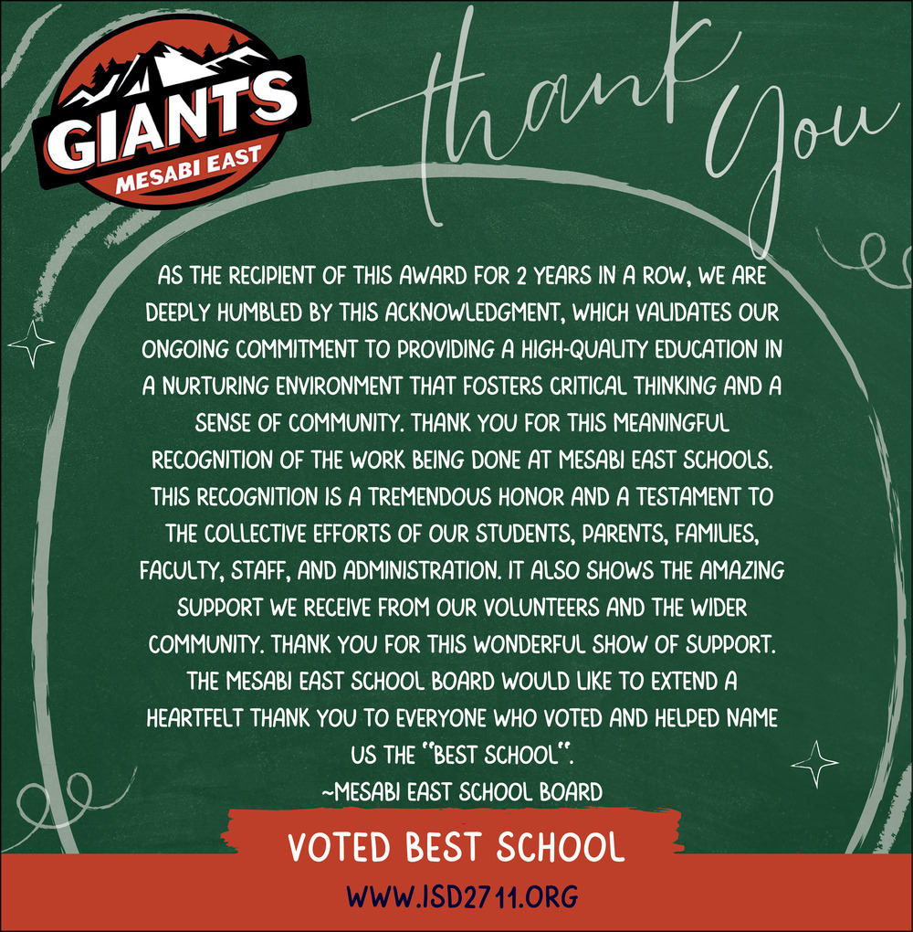 Sep 27, 2025. Giants Mesabi East Education Ads from Mesabi Daily News