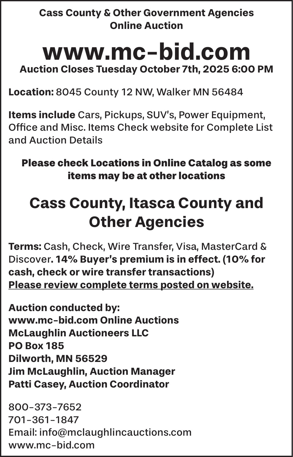 Oct 01, 2025. McLaughlin Auctioneers LLC Auctions Ads from The Pilot Independent