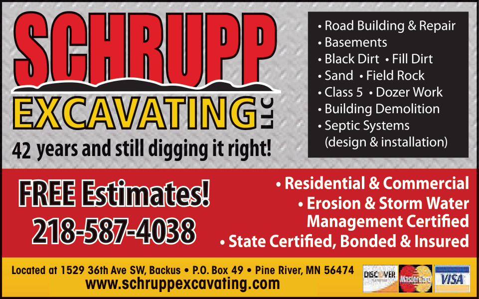 Ads for Schrupp Excavating in Pine River, MN
