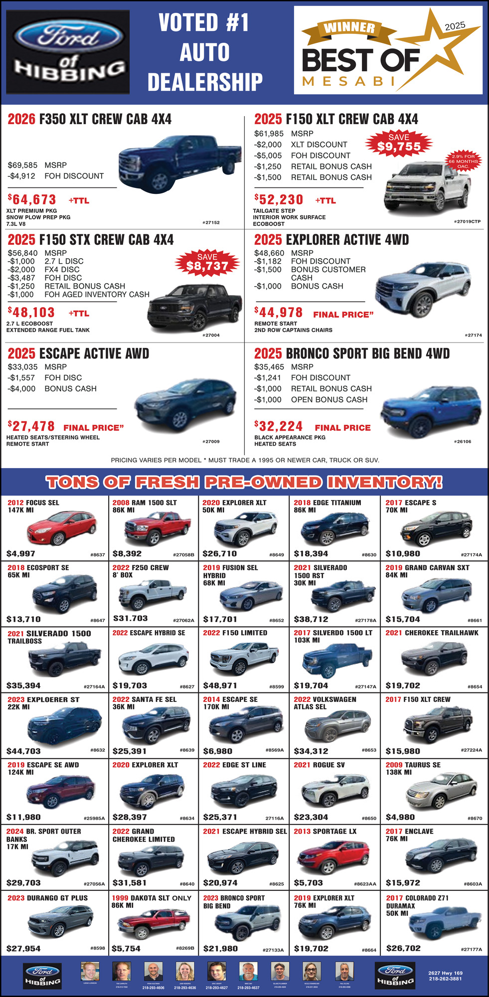 Oct 29, 2025. Ford Of Hibbing Auto Dealers Ads from Mesabi Daily News