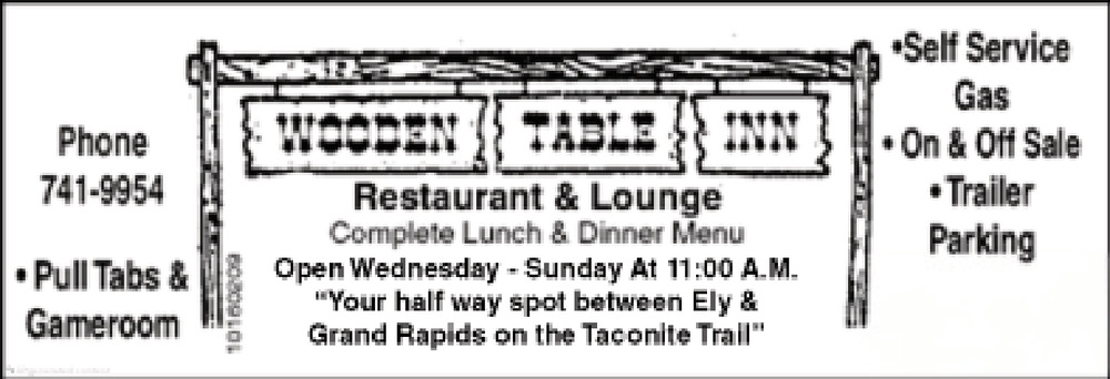 Oct 29, 2025. Wooden Table Inn Restaurants Ads from Mesabi Daily News
