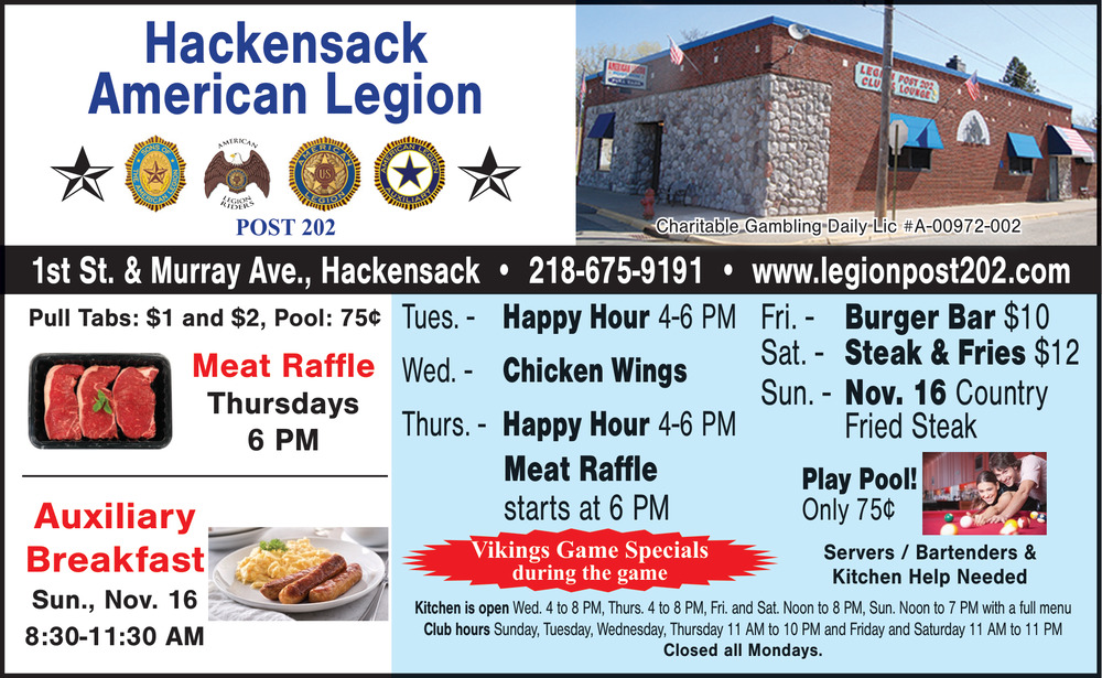 Nov 12, 2025. The Hackensack American Legion Organization Ads from The Pilot Independent