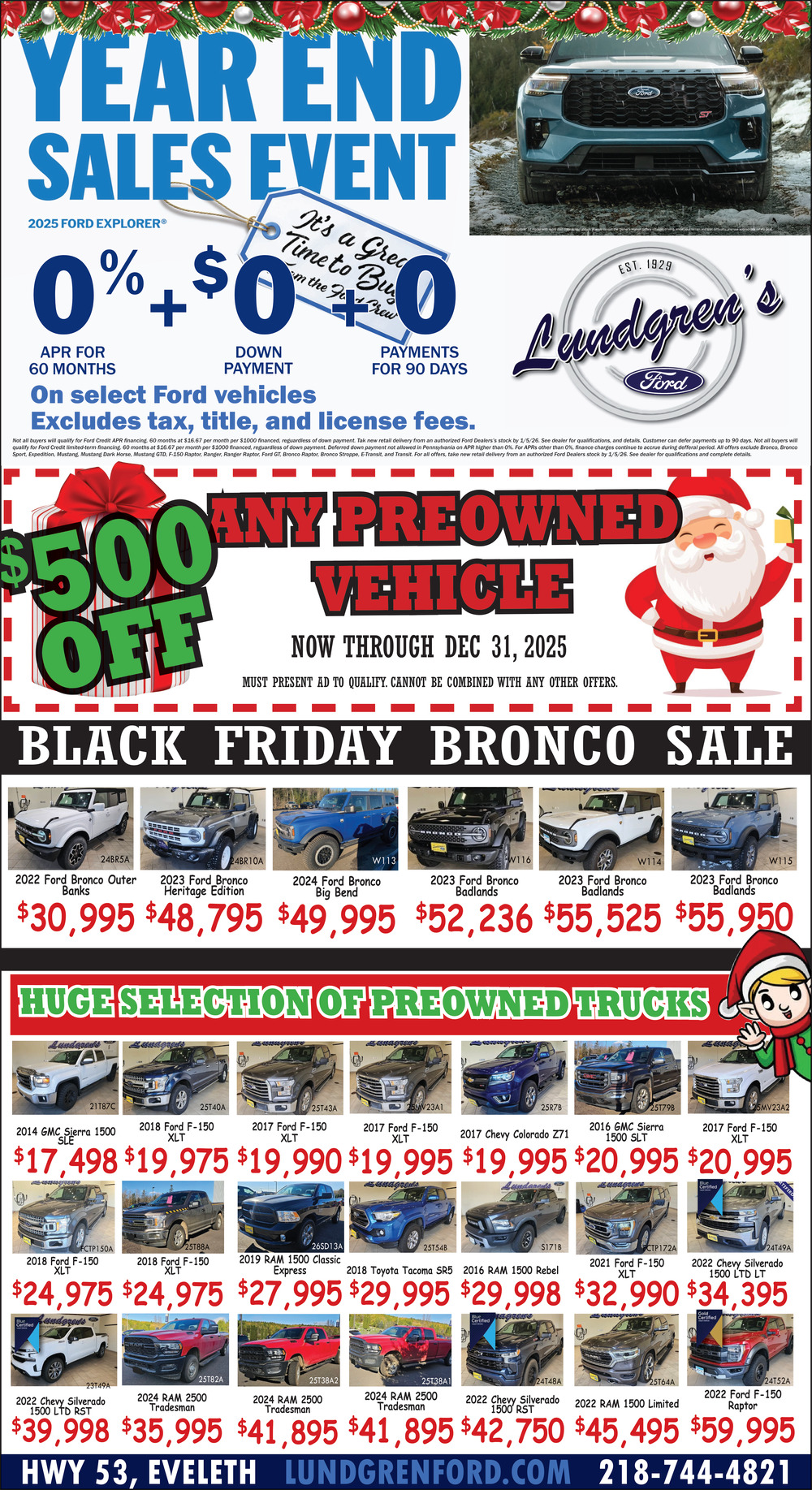Nov 26, 2025. Lundgren's Auto Dealers Ads from Mesabi Daily News