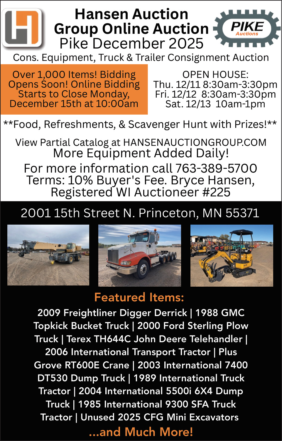 Ads for Hansen Auction Group in Princeton, MN