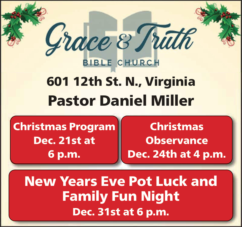 Dec 13, 2025. Grace & Truth Bible Church Church Ads from Mesabi Daily News