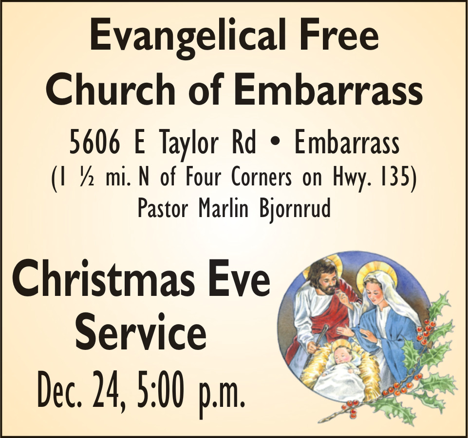 Dec 13, 2025. Evangelical Free Church Of Embarrass Church Ads from Mesabi Daily News