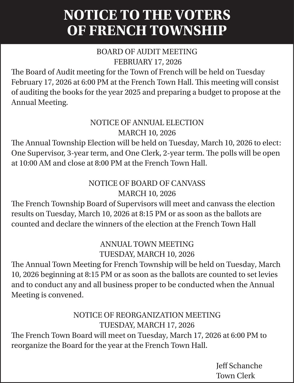 Dec 17, 2025. French Township Public Notice Ads from Mesabi Daily News
