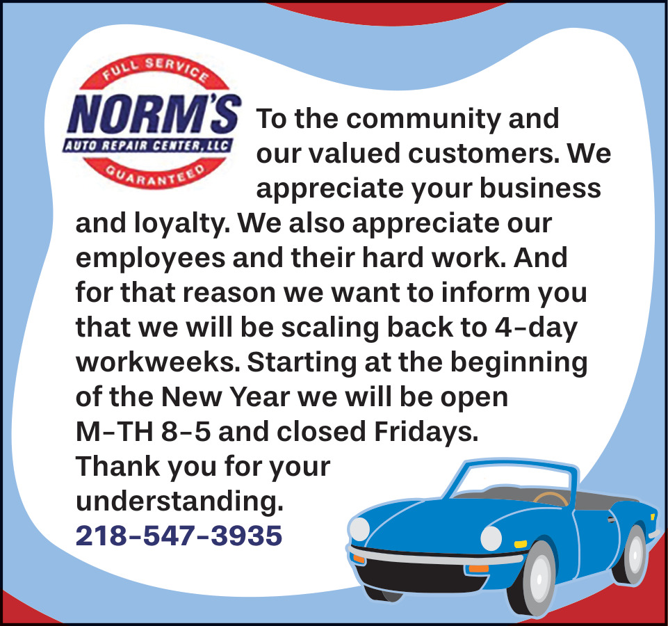 Ads for Norm's Auto Repair Center, LLC in Walker, MN