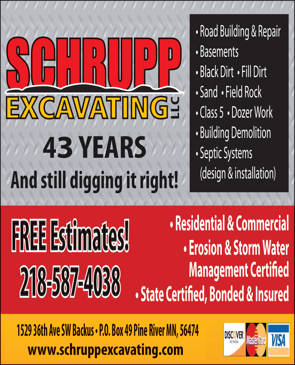 Ads for Schrupp Excavating in Pine River, MN