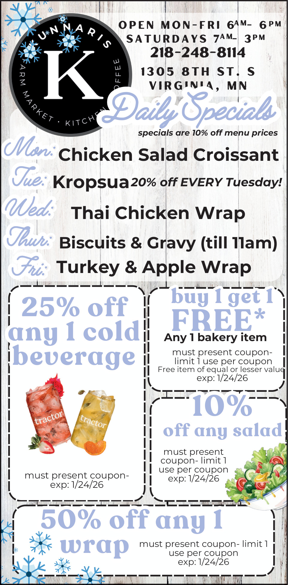 Jan 21, 2026. Kunnari's Farm Market Market Ads from Mesabi Daily News