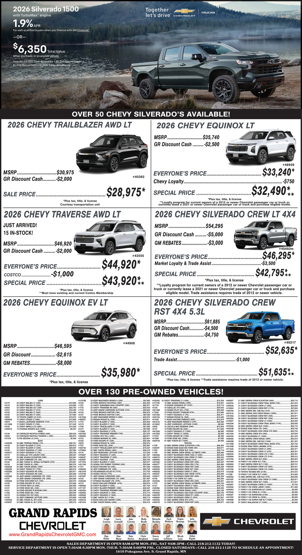 218-212-11321610 S Pokegama Ave,Grand Rapids, MN 55744(Sales)