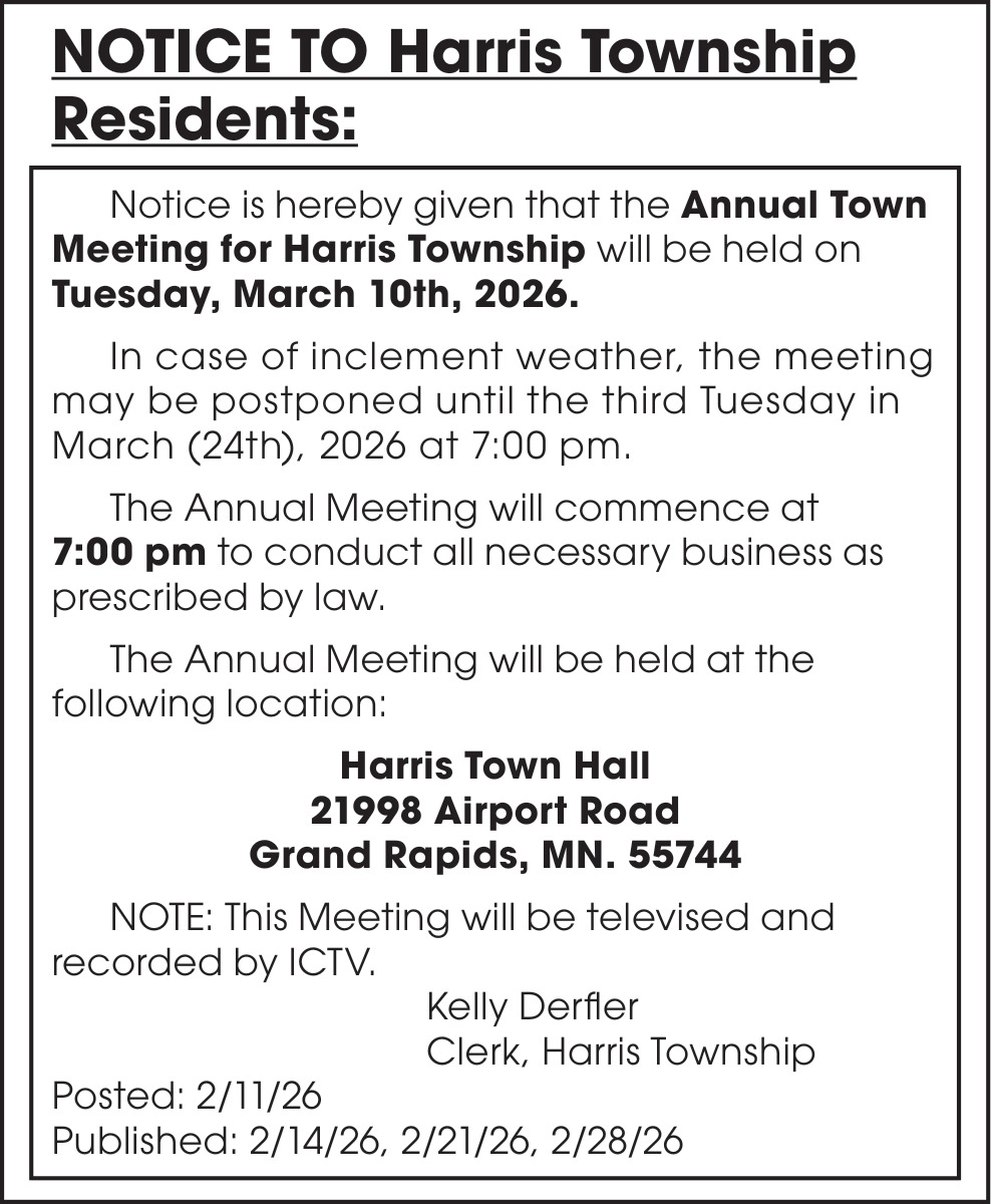 Feb 15, 2026. Harris Township Notice Ads from Grand Rapids Herald-Review