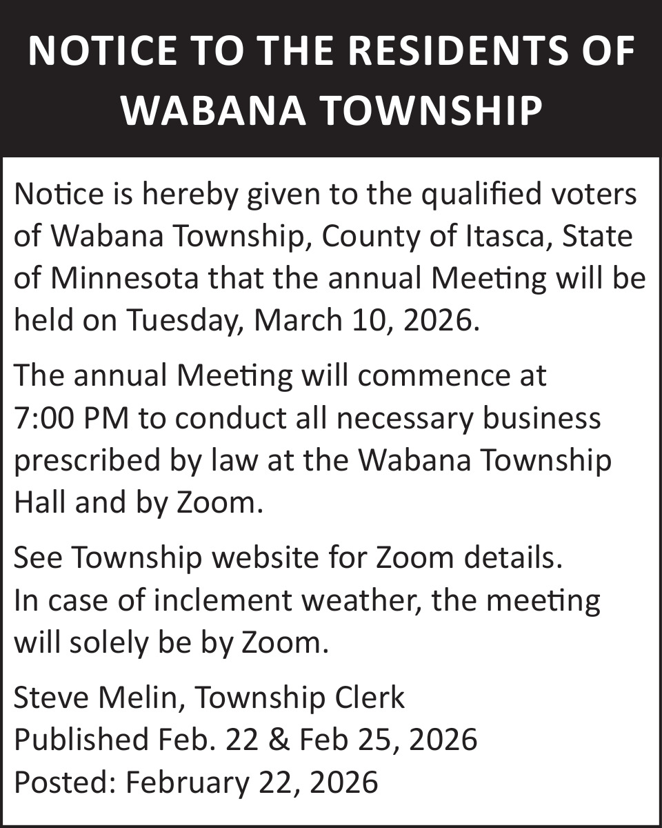 Feb 22, 2026. Wabana Township Notice Ads from Grand Rapids Herald-Review