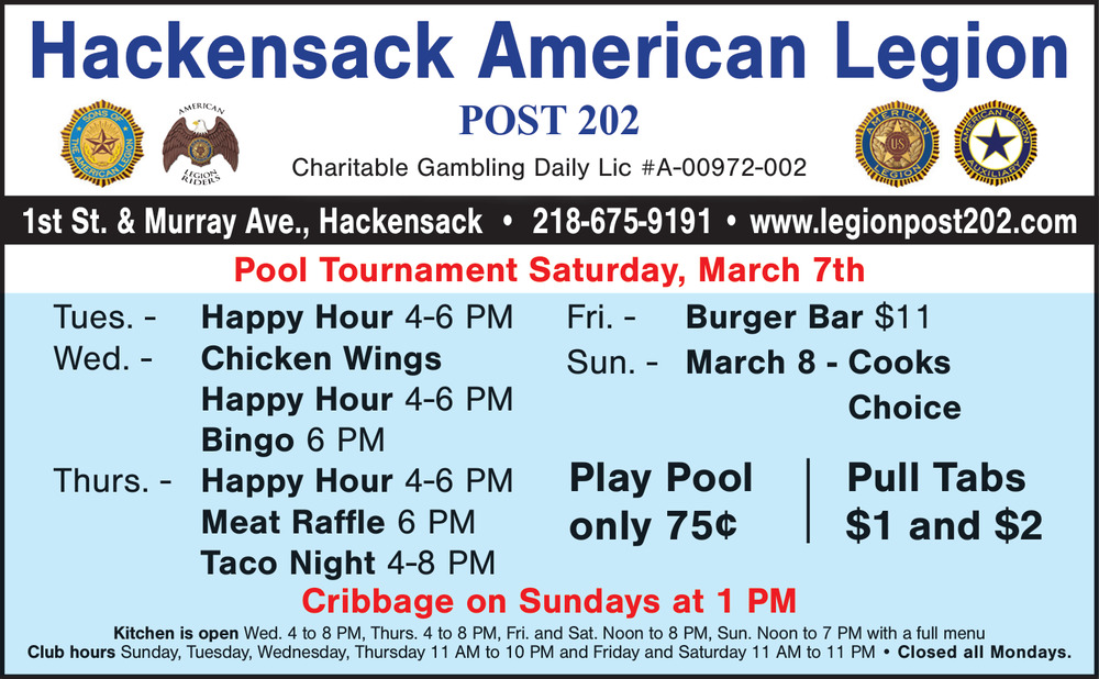 Mar 04, 2026. The Hackensack American Legion Organization Ads from The Pilot Independent