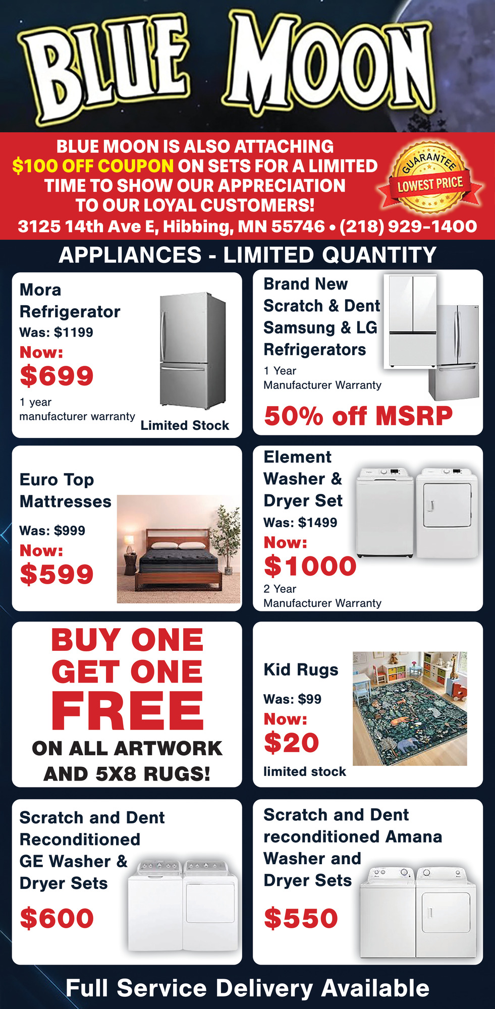 Ads for Blue Moon Appliances in Grand Rapids, MN