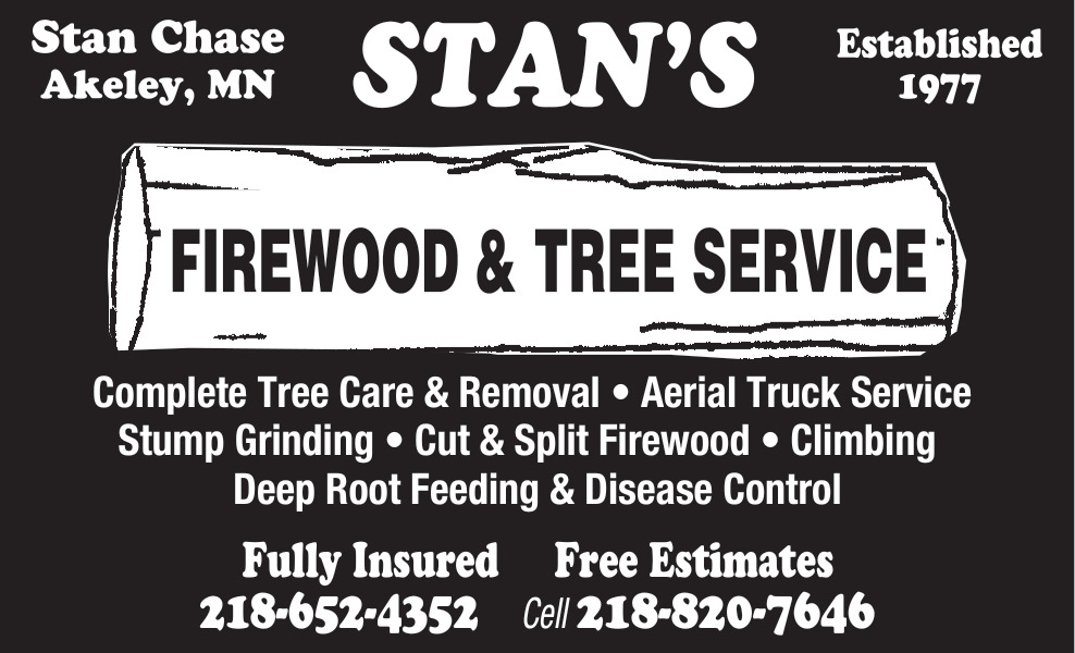 Ads for Stan's Firewood & Tree Service in Akeley, MN