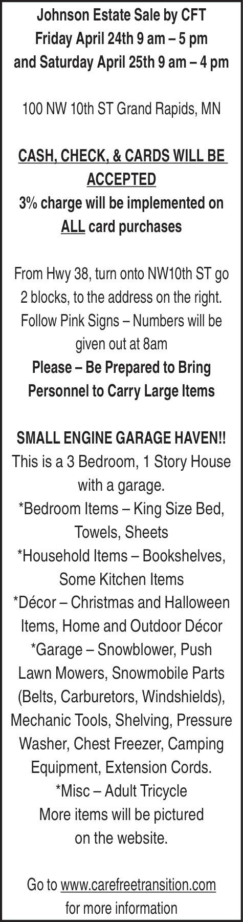 218-327-3373Off Hwy 63Cohasset, MN 55721